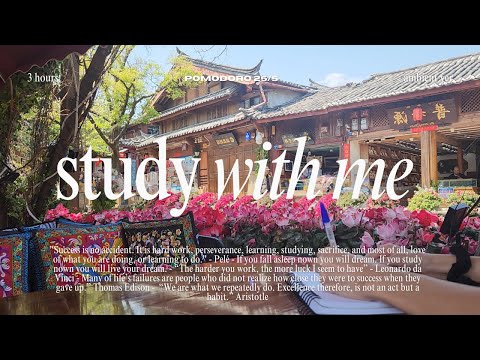 3-HOUR STUDY WITH ME in Lijiang, China [25/5] 🐦 River & Birds Sound⏰ Pomodoro timer